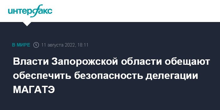 Власти Запорожской области обещают обеспечить безопасность делегации МАГАТЭ