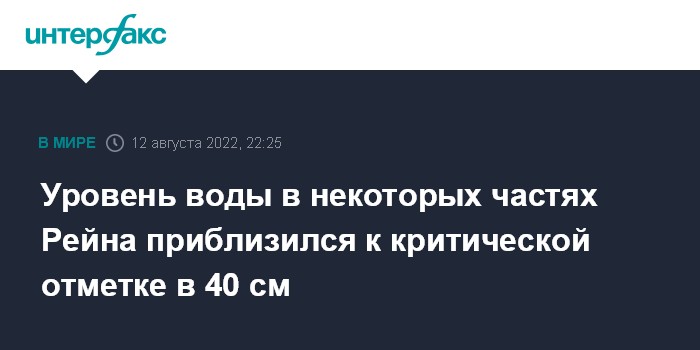 По информации ведомства, уровень воды за сутки снизился на пять сантиметров: еще в четверг уровень воды в Каубе на 546,3 километре Рейна составлял 47 сантиметров. Эксперты опасаются, что уровень воды продолжит снижаться и скоро может быть достигнута критическая отметка в 40 сантиметров.