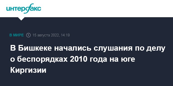 Москва. 15 августа. INTERFAX.RU - В Первомайском суде Бишкека в закрытом режиме начались предварительные слушания по делу о массовых беспорядках на юге Киргизии в июне 2010 года, сообщили в пресс-службе суда.