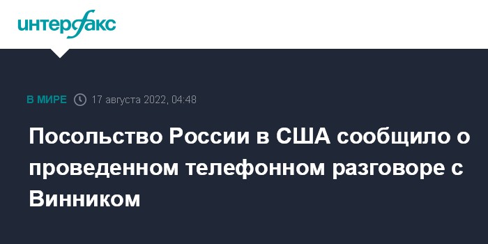 Посольство России в США сообщило о проведенном телефонном разговоре с Винником
