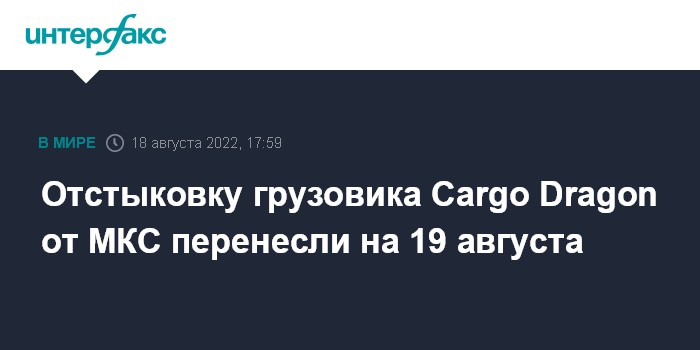 Специалисты миссии теперь намерены провести отстыковку непилотируемого космического корабля Cargo Dragon от космической станции в пятницу, 19 августа, в 11:05 по времени восточного побережья США (18:05 по Москве), отмечается в сообщении.