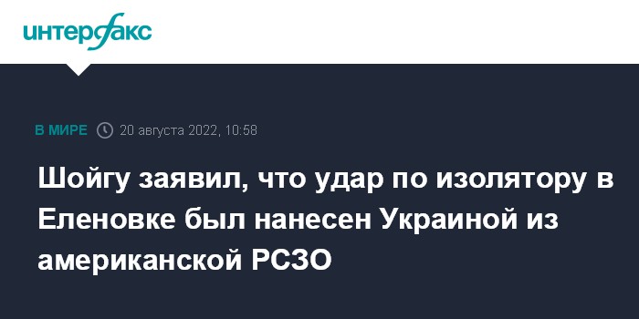 Москва. 20 августа. INTERFAX.RU - Ракетный удар по изолятору в Еленовке с украинскими военнопленными был нанесен армией Украины из реактивной системы залпового огня (РСЗО) производства США, сообщил министр обороны РФ Сергей Шойгу.