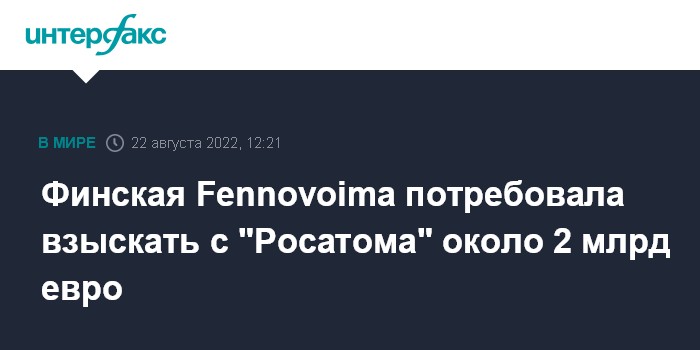 В начале мая Fennovoima, 34% в которой принадлежит ГК "Росатом", в одностороннем порядке разорвала контракт на строительство АЭС "Ханхикиви-1" со структурой "Росатома" RAOS, а в конце мая отозвала заявку на лицензию для строительства. Fennovioma ссылалась в своем решении на то, что в последние годы наблюдались значительные задержки в реализации проекта, а российская военная операция на Украине только усугубила риски для него.