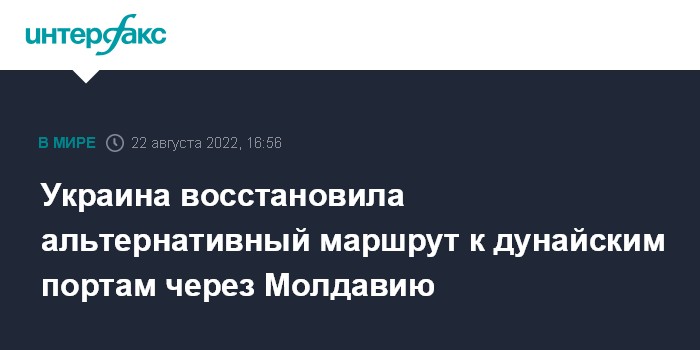 Москва. 22 августа. INTERFAX.RU - Украина и Молдавия возобновили железнодорожное сообщение на участке Березино (Украина) - Бессарабка (Басарабяска, Молдавия), которое стало частью альтернативного маршрута из Одессы к дунайским портам Рени и Измаил, сообщило Мининфраструктуры Украины в понедельник.