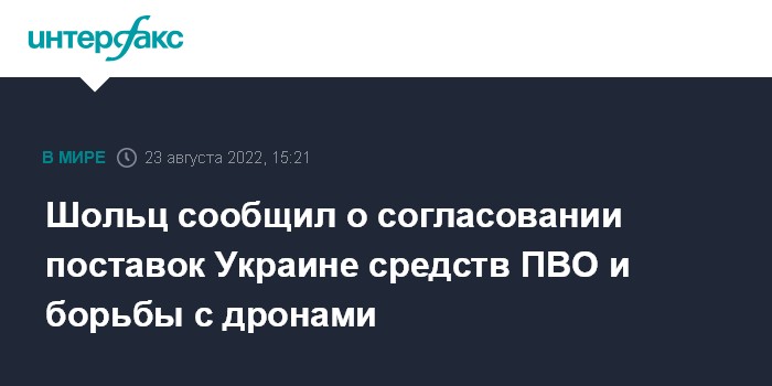 Москва. 23 августа. INTERFAX.RU - Берлин и его партнеры договорились о новом пакете военной помощи Украине, включающего современные системы противовоздушной обороны, заявил во вторник канцлер ФРГ Олаф Шольц на саммите "Крымская платформа".
