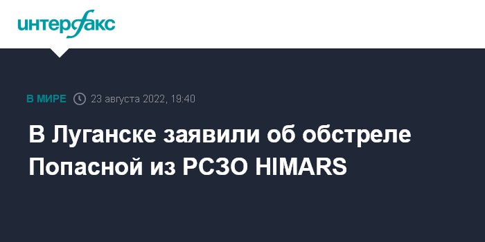 Москва. 23 августа. INTERFAX.RU - Вооружённые силы Украины обстреляли подконтрольный Луганской народной республике город Попасная из реактивных систем залпового огня американского производства HIMARS, сообщает представительство ЛНР в Совместном центре по контролю и координации режима прекращения огня (СЦКК).