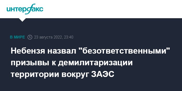 Ранее 12 августа в ходе заседания СБ ООН Небензя предупредил о риске провокаций и терактов на Запорожской АЭС в случае ее демилитаризации.