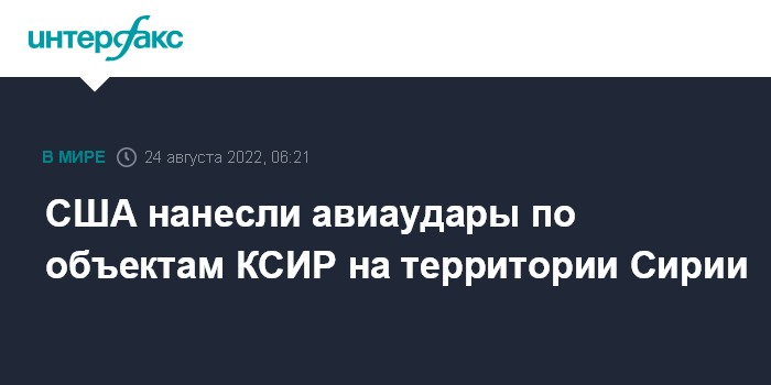 Москва. 24 августа. INTERFAX.RU - Центральное командование ВС США сообщило, что американские ВВС по указанию президента США Джо Байдена нанесли удары по объектам на территории Сирии, которые, как утверждается, принадлежат иранскому Корпусу стражей исламской революции (КСИР).