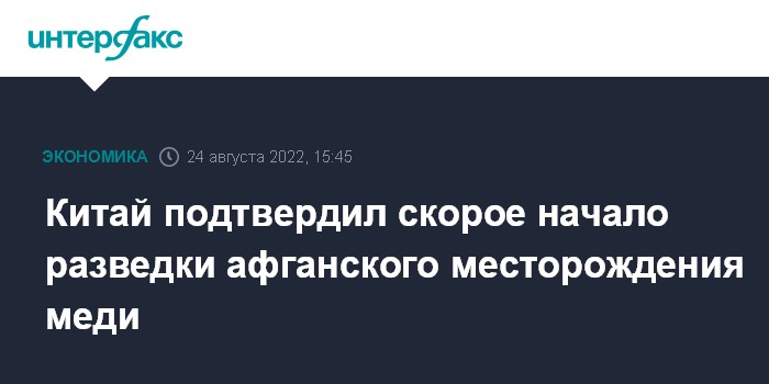 В начале марта представитель "Талибана" (контролирующая Афганистан организация, признанная в России террористической и запрещена) говорил, что китайская компания MCC начнет добычу меди на Айнаке уже в ближайшие дни.