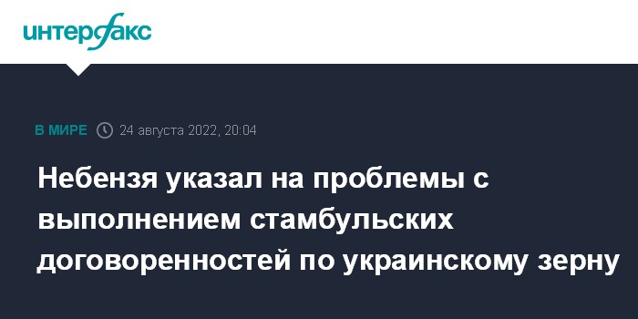 Небензя указал на проблемы с выполнением стамбульских договоренностей по украинскому зерну