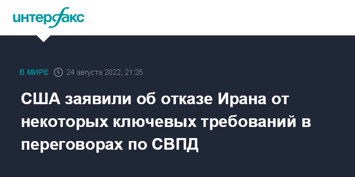 Ранее в среду сообщалось, что Иран получил ответ Соединенных Штатов на предложенный ЕС проект соглашения о восстановлении действия СВПД. Госдеп подтвердил, что США получили информацию об иранской позиции по СВПД и через ЕС направили свои комментарии по этим аспектам.