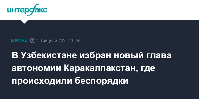 В Узбекистане избран новый глава автономии Каракалпакстан, где происходили беспорядки