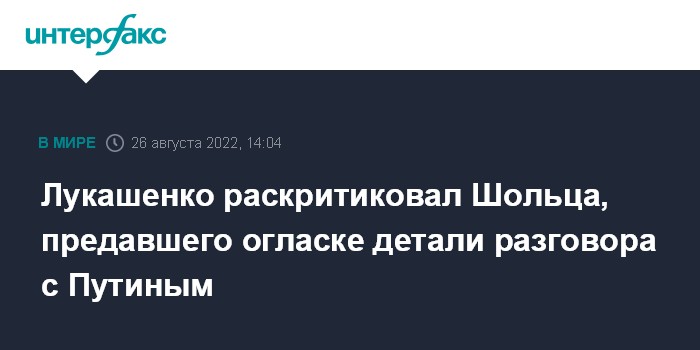 Пресс-служба президента приводит комментарий Лукашенко в связи с заявлениями Шольца о том, что в разговоре с ним Путин якобы стал отрицать независимость Белоруссии и Украины.