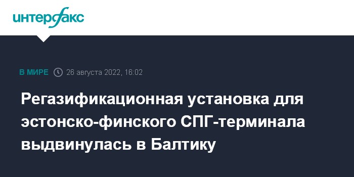 Регазификационная установка для эстонско-финского СПГ-терминала выдвинулась в Балтику