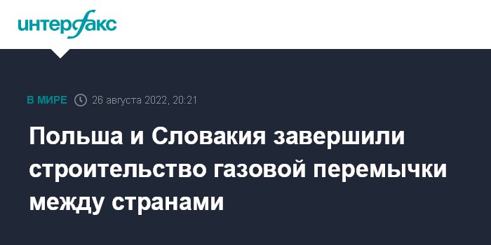Москва. 26 августа. INTERFAX.RU - Польша и Словакия завершили строительство газопровода-перемычки между странами протяженностью 164 км, который позволит транспортировать 5,7 млрд куб. м в год в Польшу и 4,7 млрд куб. м в Словакию.