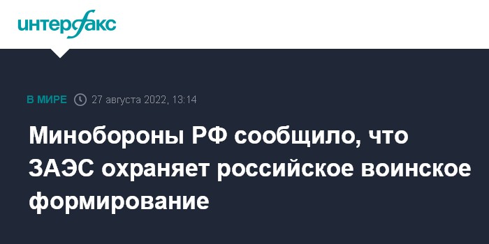 Минобороны РФ сообщило, что ЗАЭС охраняет российское воинское формирование
