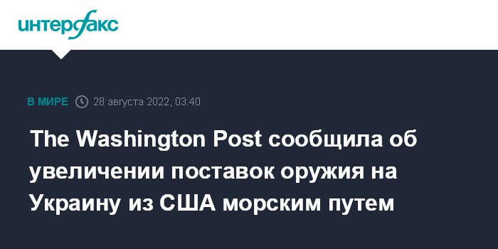 Москва. 28 августа. INTERFAX.RU - Пентагон расширяет использование морских перевозок для доставки оружия Украине, сообщила газета The Washington Post со ссылкой на представителей Минобороны США.
