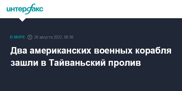 Этот проход американских военных кораблей, отмечается в сообщениях, стал первым после визита на Тайвань 2-3 августа спикера Палаты представителей США Нэнси Пелоси, что вызвало резкую негативную реакцию Китая и вылилось в рост напряженности в Тайваньском проливе.