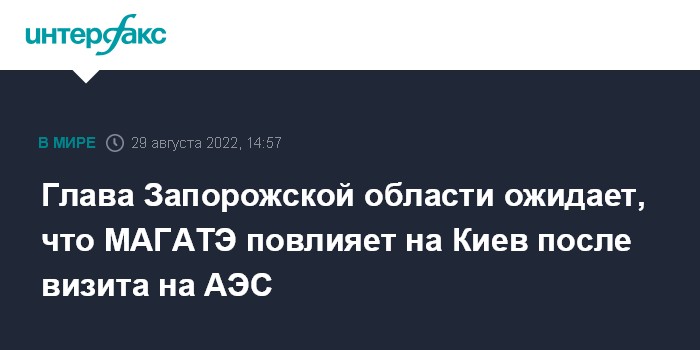 Глава Запорожской области ожидает, что МАГАТЭ повлияет на Киев после визита на АЭС