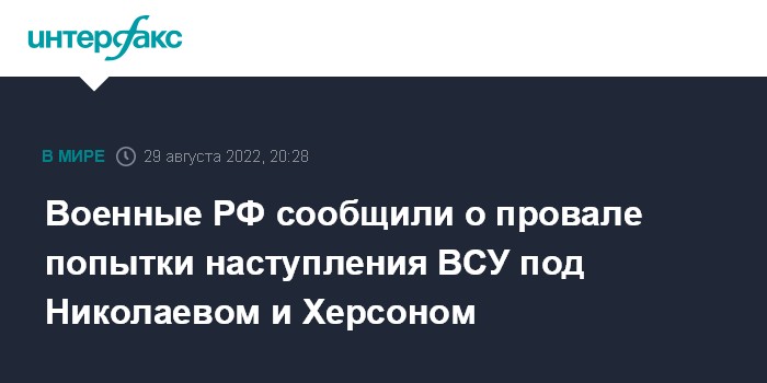 Военные РФ сообщили о провале попытки наступления ВСУ под Николаевом и Херсоном