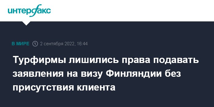 Как сообщалось, с 1 сентября Финляндия ограничила прием визовых заявлений от россиян до 500 в день, подать документы на туристическую визу теперь можно только по понедельникам и только в четырех городах РФ: в Москве, Санкт-Петербурге, Петрозаводске и Мурманске. Таким образом власти Финляндии решили ограничить выдачу шенгенских виз россиянам до одной десятой от нынешнего уровня.