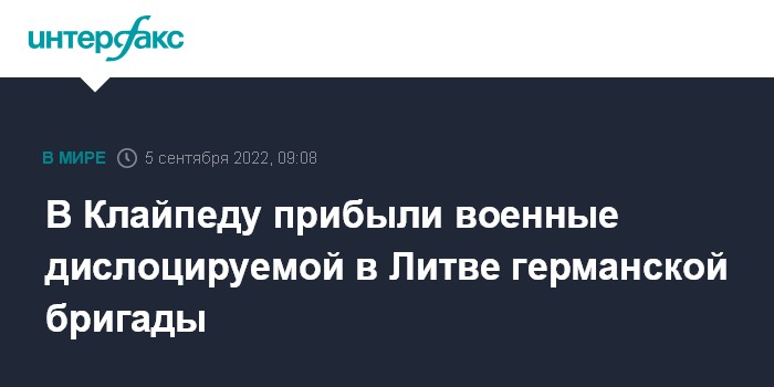 Москва. 5 сентября. INTERFAX.RU - Первые военные дислоцируемой в Литве немецкой бригады прибыли в воскресенье в Клайпеду на пароме из Киля.