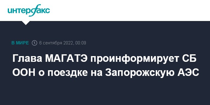 Глава МАГАТЭ проинформирует СБ ООН о поездке на Запорожскую АЭС