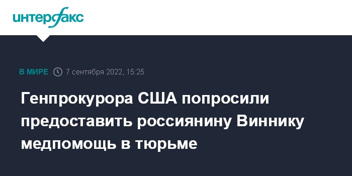 Генпрокурора США попросили предоставить россиянину Виннику медпомощь в тюрьме