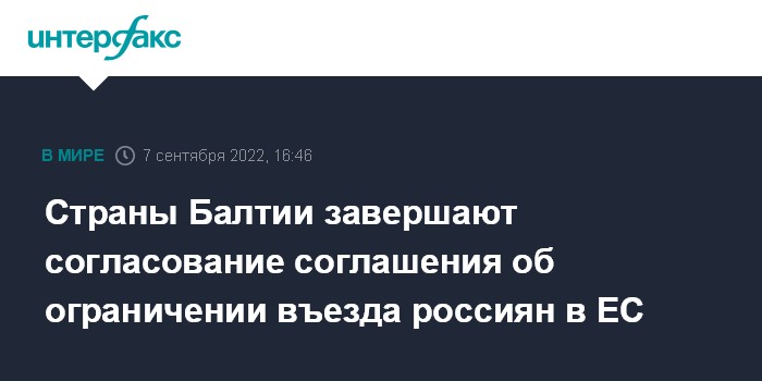 Москва. 7 сентября. INTERFAX.RU - Страны Балтии завершают работу над совместным соглашением, которое ограничит въезд россиян с шенгенскими визами в Евросоюз.