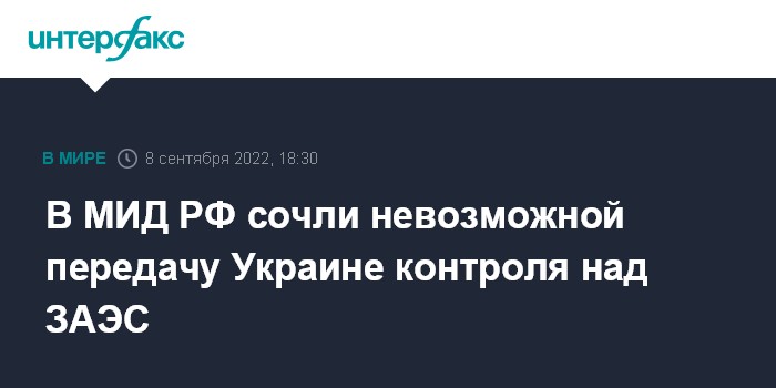 В МИД РФ сочли невозможной передачу Украине контроля над ЗАЭС