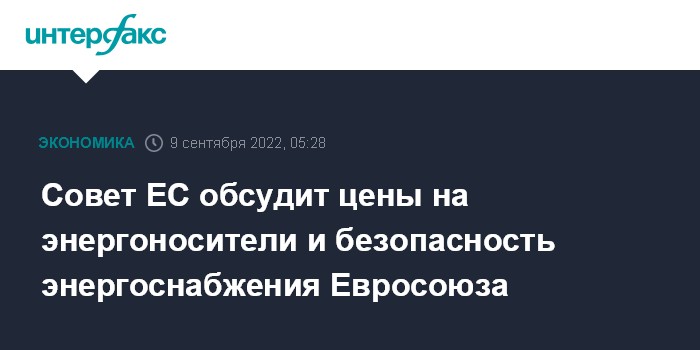 Москва. 9 сентября. INTERFAX.RU - В Брюсселе в пятницу состоится внеочередной Совет ЕС по энергетике, который обсудит высокие цены на рынке энергоносителей и вопросы безопасности энергоснабжения стран Евросоюза, сообщается в коммюнике, опубликованном в Брюсселе.