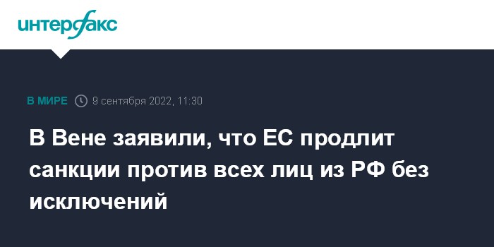 В Вене заявили, что ЕС продлит санкции против всех лиц из РФ без исключений
