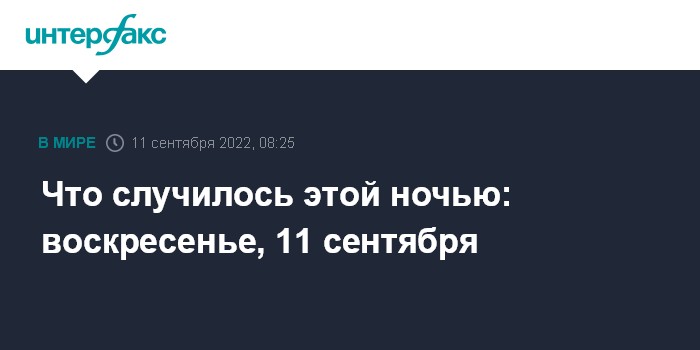 Москва. 11 сентября. INTERFAX.RU - Краткая сводка событий, произошедших к утру: