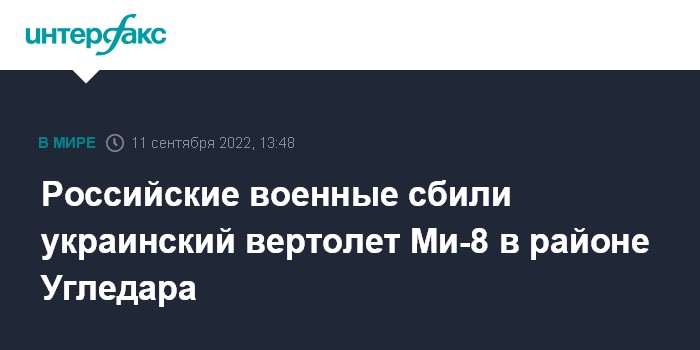 Российские военные сбили украинский вертолет Ми-8 в районе Угледара