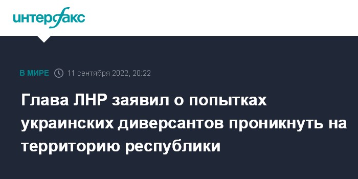 Глава ЛНР отметил, что случаи попыток проникновения украинских диверсантов на территорию ЛНР зафиксированы в ряде ранее освобожденных населённых пунктов.