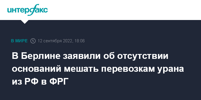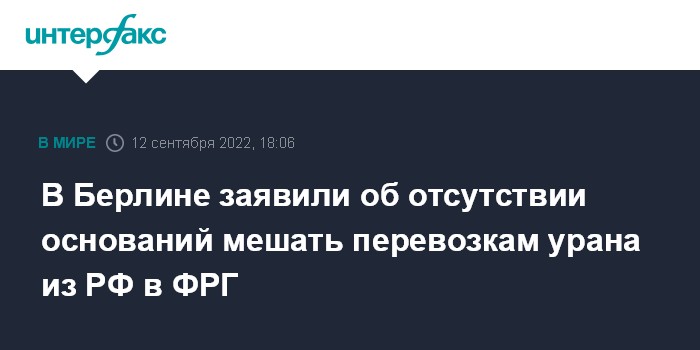 В Берлине заявили об отсутствии оснований мешать перевозкам урана из РФ в ФРГ