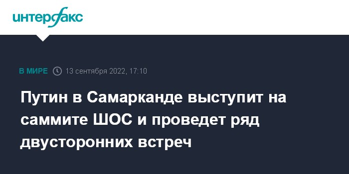 Москва. 13 сентября. INTERFAX.RU - Президент РФ Владимир Путин выступит на заседании Совета глав государств-членов Шанхайской организации сотрудничества в Самарканде и проведет множество двусторонних встреч "на полях" саммита, сообщил помощник президента РФ Юрий Ушаков.