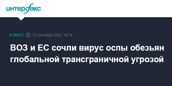 ВОЗ и ЕС сочли вирус оспы обезьян глобальной трансграничной угрозой