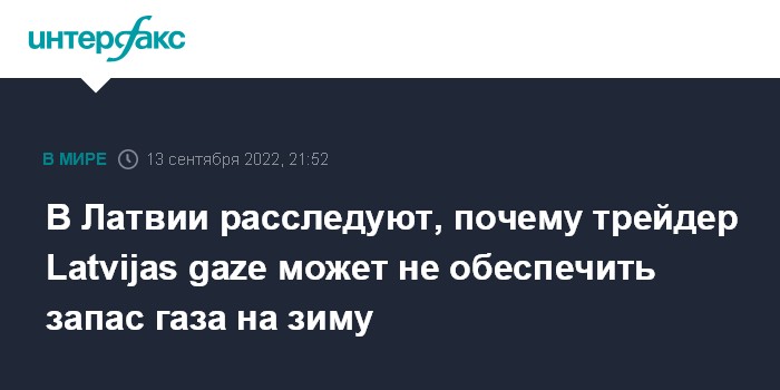 Москва. 13 сентября. INTERFAX.RU - Генпрокуратура Латвии сообщила, что начала расследование по поводу соответствия действий газотрейдера - компании Latvijas gaze - требованиям закона об энергетике в связи с необеспечением ею резервов природного газа для поставки потребителям в сезоне 2022-2023 годов.
