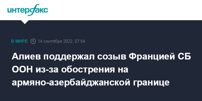 Алиев указал на важность рассмотрения на объективной основе вопроса напряженности на границе между Арменией и Азербайджаном, который будет вынесен на повестку дня Совета Безопасности ООН по инициативе Франции, резюмировали там.