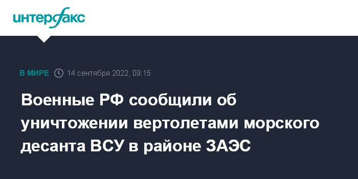 Военные РФ сообщили об уничтожении вертолетами морского десанта ВСУ в районе ЗАЭС