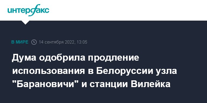 Дума одобрила продление использования в Белоруссии узла "Барановичи" и станции Вилейка