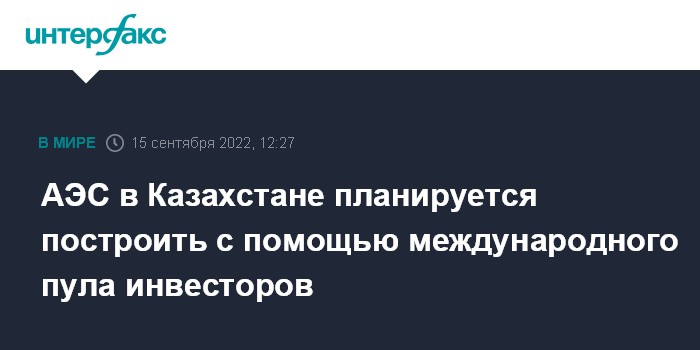 Москва. 15 сентября. INTERFAX.RU - Проект по строительству атомной электростанции в Казахстане планируется реализовать международным пулом инвесторов. Об этом сообщил председатель правления "Самрук-Казына" Алмасадам Саткалиев.