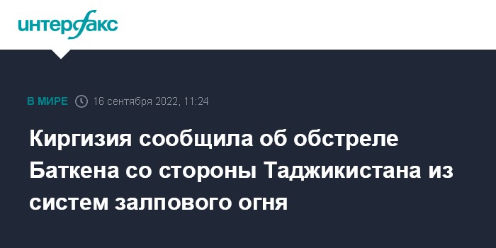 Пресс-служба ГКНБ Киргизии заявляет, что таджикская сторона, "нарушив все ранее достигнутые договоренности, вероломно атаковала пограничные и гражданские объекты по всему периметру киргизско-таджикской госграницы в Баткенской области". По данным ведомства, сейчас вооруженные столкновения продолжаются, таджикская сторона применяет танки, БТР, БМП, минометы, а также ракетные системы залпового огня (РСЗО) и авиацию.