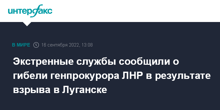 Экстренные службы сообщили о гибели генпрокурора ЛНР в результате взрыва в Луганске