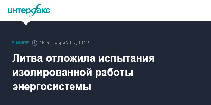 Как сообщалось, Литва в сентябре планировала впервые провести испытания энергосистемы страны в изолированном режиме работы. Ранее проводились только частичные испытания энергосистемы страны в изолированном режиме.