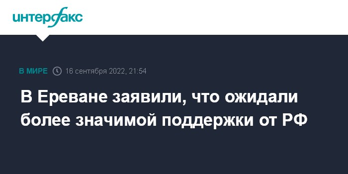 В Ереване заявили, что ожидали более значимой поддержки от РФ