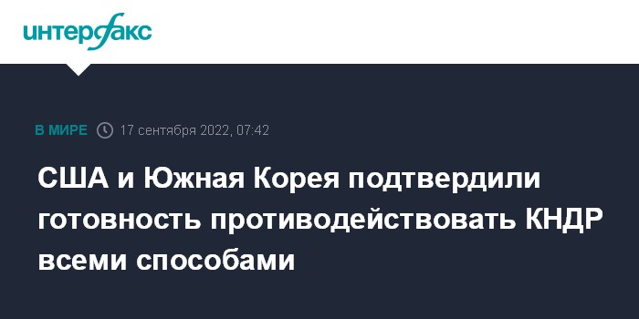 "Диалог, состоявшийся 16 сентября, подчеркнул приверженность обоих партнеров использованию всех доступных рычагов - включая дипломатические, информационные, военные и экономические инструменты - для укрепления приверженности США безопасности РК и усиления сдерживания КНДР, а также в более широком плане - противодействия угрозе со стороны КНДР", - говорится в итоговом совместном заявлении сторон.