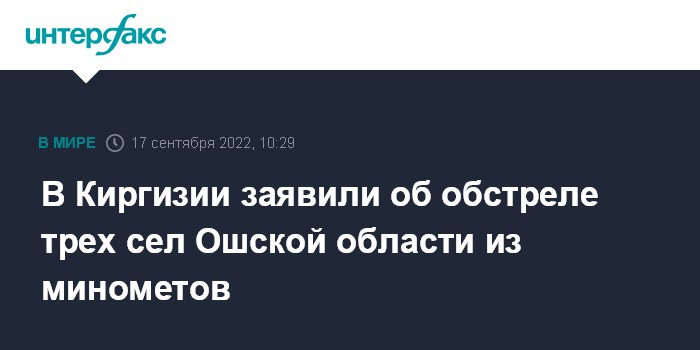 Москва. 17 сентября. INTERFAX.RU - Три села Чон-Алайского района Ошской области Киргизии подверглись обстрелу со стороны Таджикистана, сообщили в субботу в Погранслужбе Госкомитета национальной безопасности Киргизии.
