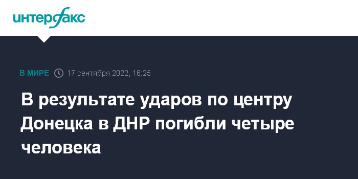 Москва. 17 сентября. INTERFAX.RU - Четверо мирных жителей погибли в результате ракетных ударов по Ворошиловскому району Донецка, заявил в субботу мэр города в Донецкой народной республике Алексей Кулемзин.
